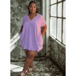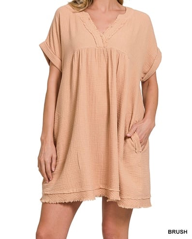 DOUBLE GAUZE RAW EDGE V-NECK DRESS
