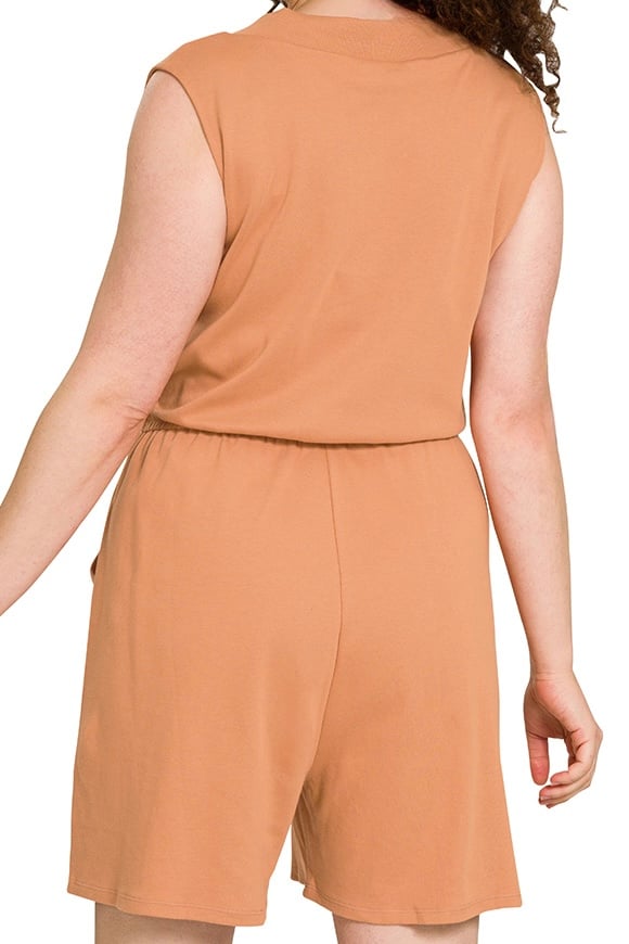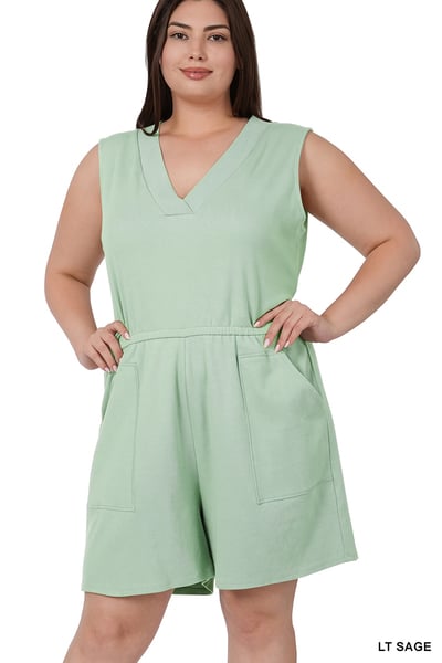 Introducing our **Plus Cotton Sleeveless Romper with Pockets**, a perfect blend of comfort and style for your casual outings.